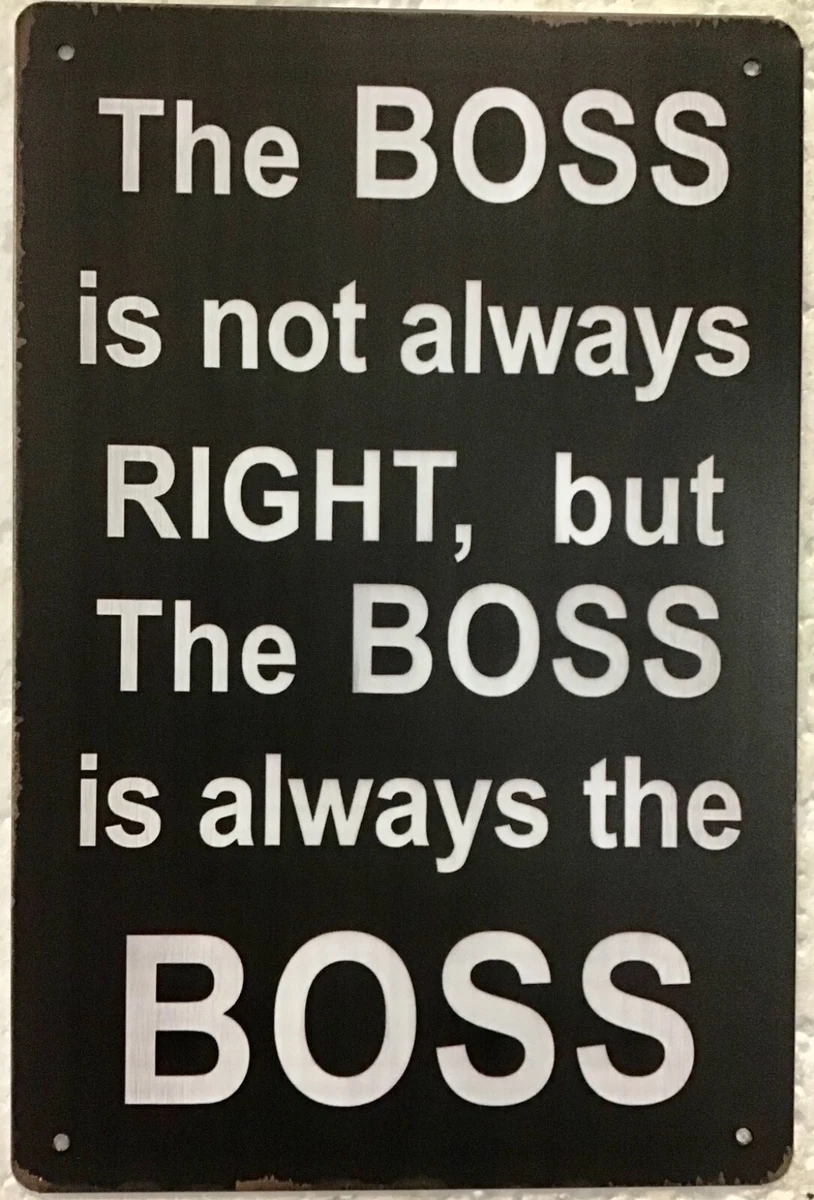 Boss Is Not Always Right Quotes The Boss is Not Always Right Quote Vintage Style Metal Advertising : However, some companies choose to remain open on Christmas Day, and one man revealed that not only is his boss is keeping their doors open on Christmas, but he also expects all employees who are . And your question brings up a second gripe: If we thought the trend of more and more teams facing opt-outs and portallers was an issue this bowl season, when the expansion happens, who is going to get .