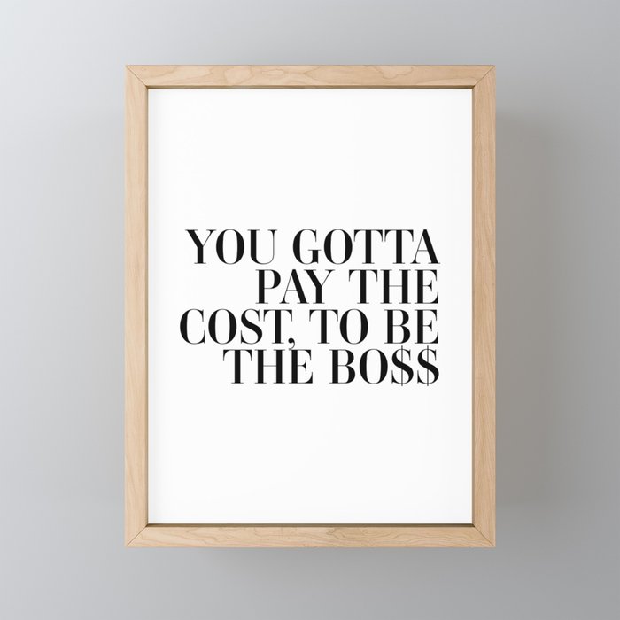 You gotta pay the cost, to be the boss Framed Mini Art Print by