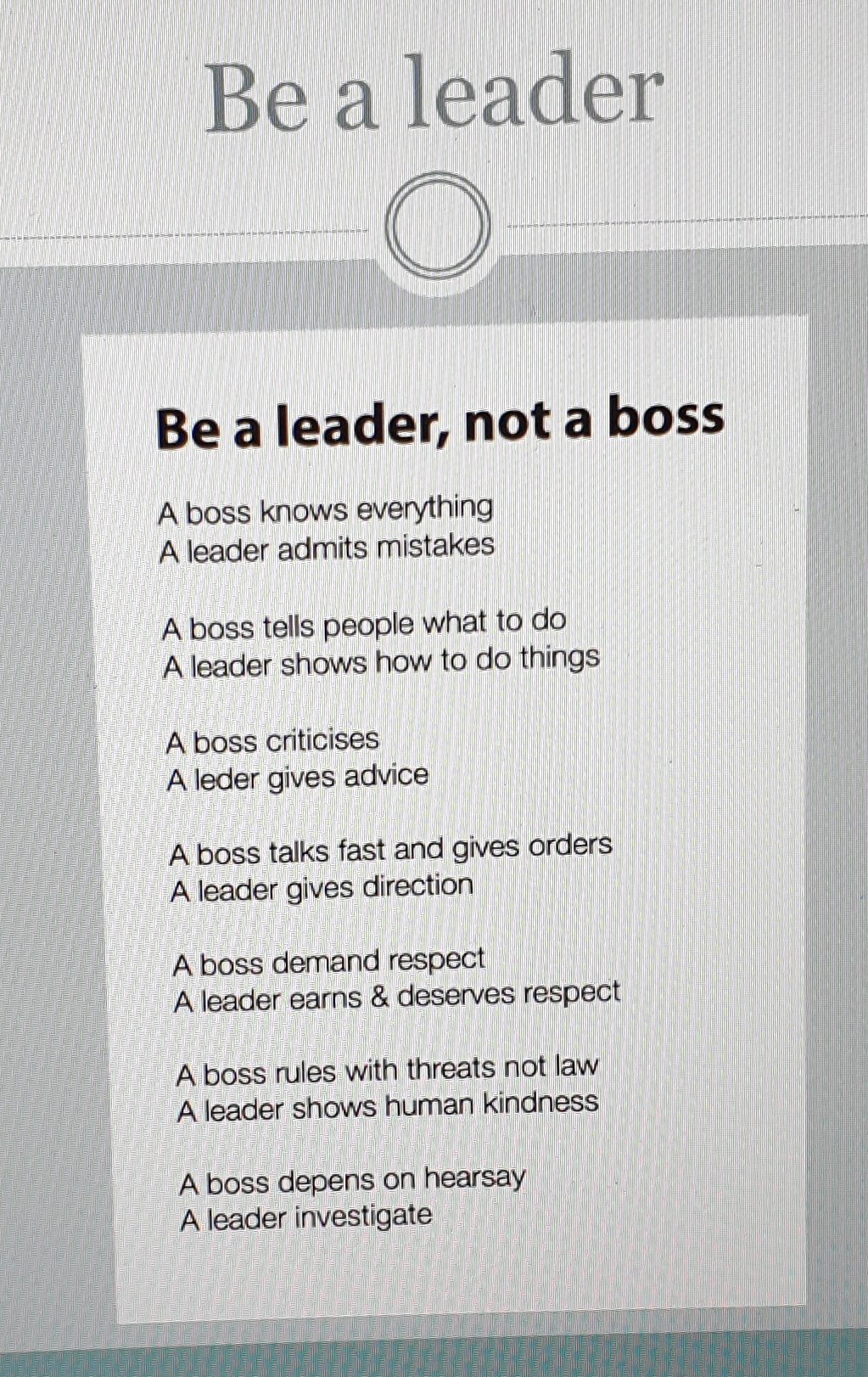 Quotes About Being A Leader Not A Boss – “This life is yours. Take the power to choose what you want to do and do it well. Take the power to love what you want in life and love it honestly. Take the power to walk in the forest and be a part . In contrast, a leader inspires change, fosters a culture of innovation and encourages team growth. This contrast is not just in actions but also in mindset; while a boss thinks about tasks and .
